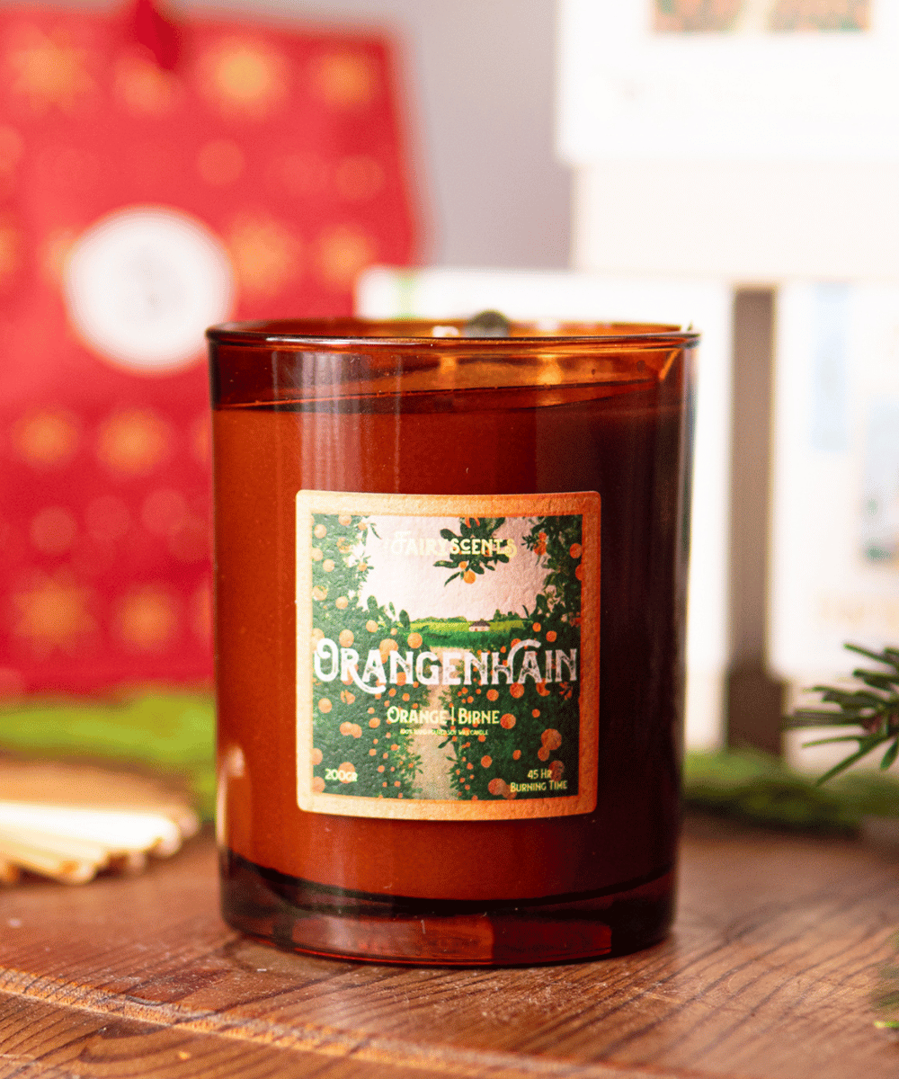 Mit "Orangenhain" holen wir den Duft eines sonnigen Orangenhains direkt in dein Zuhause. Die spritzigen Aromen von Orange und Birne verbinden sich mit einer warmen Atmosphäre und verleihen deinem Raum eine erfrischende Fruchtigkeit. Ob an kühlen Winterabenden oder in entspannten Momenten – "Orangenhain" bringt natürliche Frische und wohlige Wärme in jeden Augenblick.